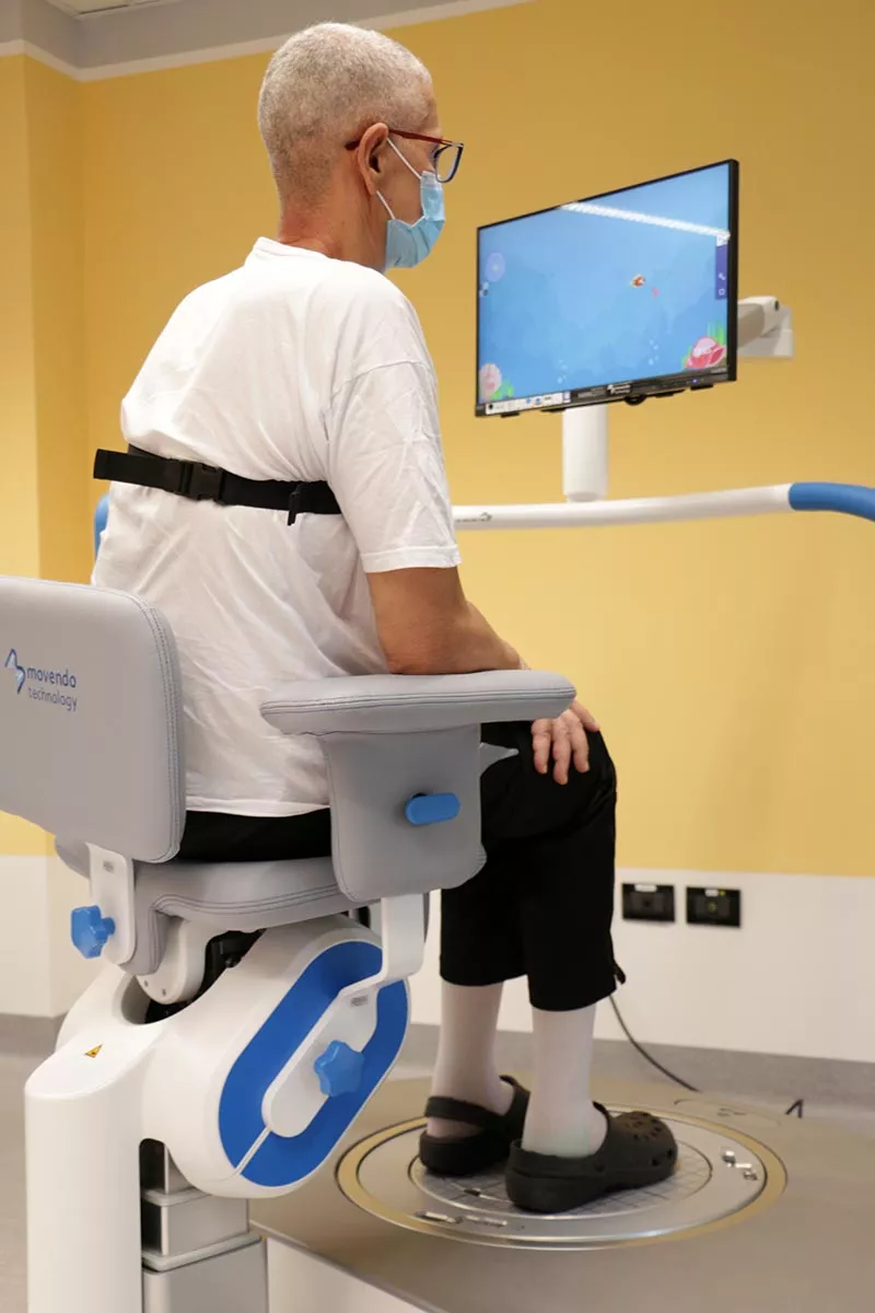 HUNOVA: dispositivo medico robotico programmabile che consiste in due piattaforme elettromeccaniche a due gradi di libertà, una a livello dei piedi ed una a livello della seduta. Utilizzato per lavorare sull’equilibrio e sul rinforzo del tronco da seduto, per la propriocettiva in stazione eretta bipodalica e monopodalica; mobilizzazione passiva, attiva e rinforzo della tibio-tarsica.