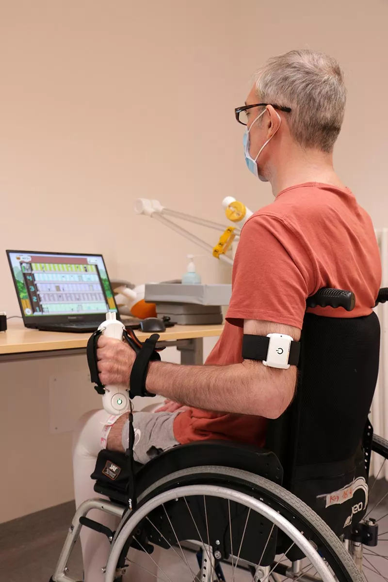 PABLO: dispositivo per la valutazione e riabilitazione della forza di presa ed estensione della mano e dei molteplici range articolari dell’arto superiore. Attraverso la scelta di esercizi riabilitativi personalizzabili, è possibile cimentarsi con delle coinvolgenti terapie interattive e cognitive; inoltre dispone di particolari accessori e di nuovi sensori wireless applicabili a qualsiasi parte del corpo (a livello dell’articolazione di caviglia, per esempio, permettendo report del passo) e che comunicano con il software tramite bluetooth.