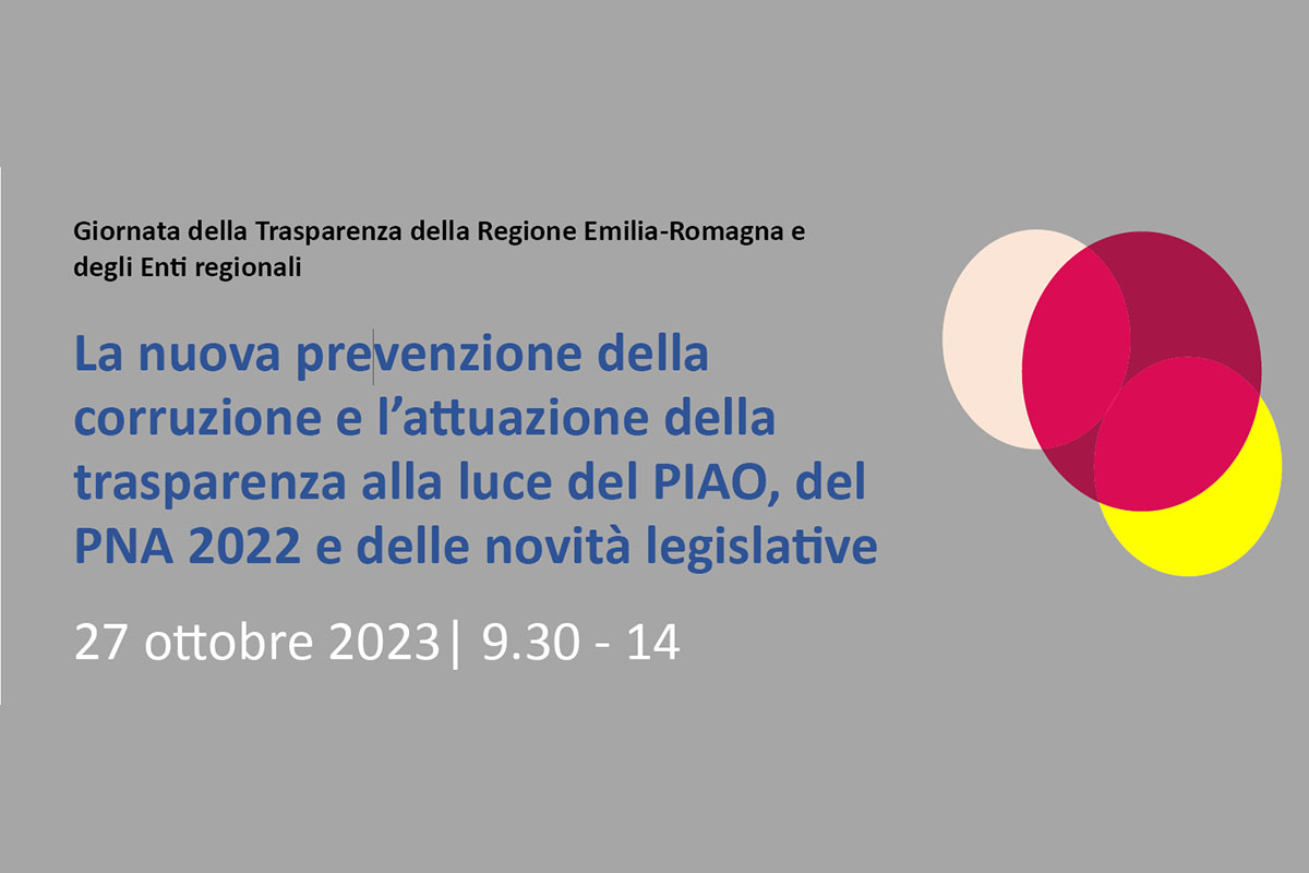 Il prossimo 27 ottobre 2023 è la Giornata della Trasparenza della Regione Emilia-Romagna e degli Enti regionali.