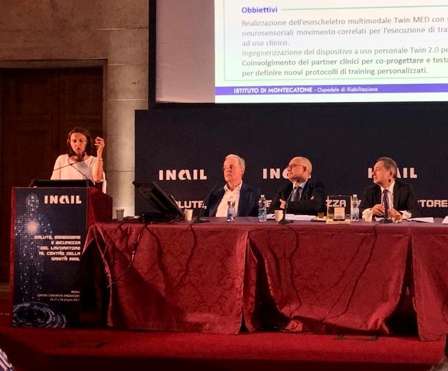 Proprio in quest’ultimo segmento MRI ha all’attivo uno studio importante con INAIL e IIT denominato Twin di cui è stato dato ampio reporting – in special modo sul percorso clinico – oltre a una più generale overview sull’expertise riabilitativa con questi dispositivi, adottati a Montecatone nel 2015 (Ekso GT), nell’ambito del Convegno Nazionale di Medicina e Sanità di INAIL svoltosi a Roma. Protagonista della relazione Ilaria Baroncini, Principal Investigator MRI nel progetto al quale l’Istituto partecipa come partner clinico (con un team di esperti creato proprio dal PM).