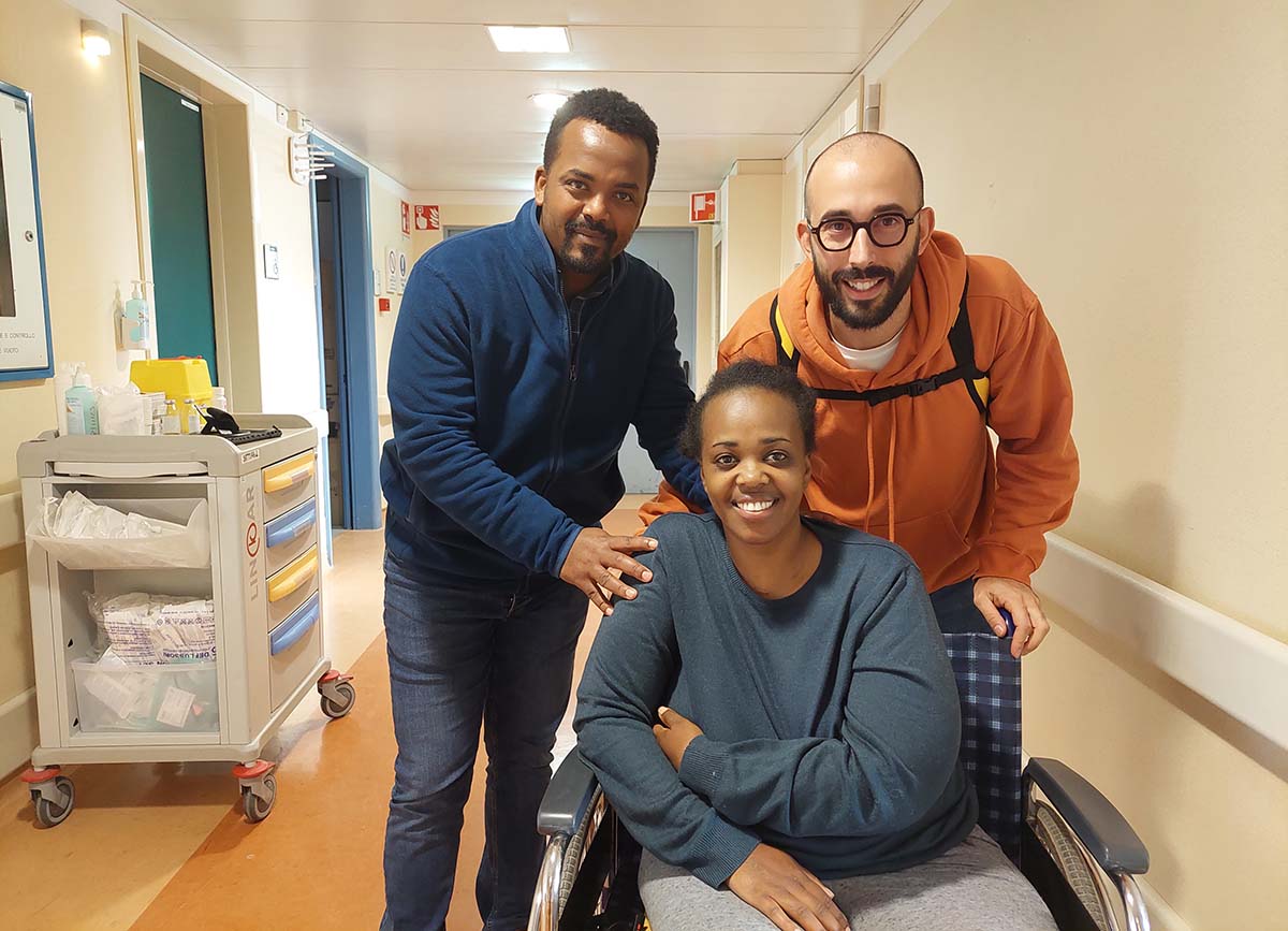 “Se potessi tornare indietro vorrei prendermi cura dei pazienti proprio come fate voi con me”. Queste le parole di gratitudine della giovane donna, mamma di due bimbi (di 8 e 10 anni), che da quando è stata vittima di un incidente stradale avvenuto in Etiopia 6 anni fa, vive la sua quotidianità in sedia a rotelle. Fu proprio quell’evento a stravolgere la sua vita privata e professionale. La donna, infatti, prima di quel brutto incidente, lavorava come infermiera nel reparto di Medicina Interna della città di Soddo, sempre attenta ai più fragili.