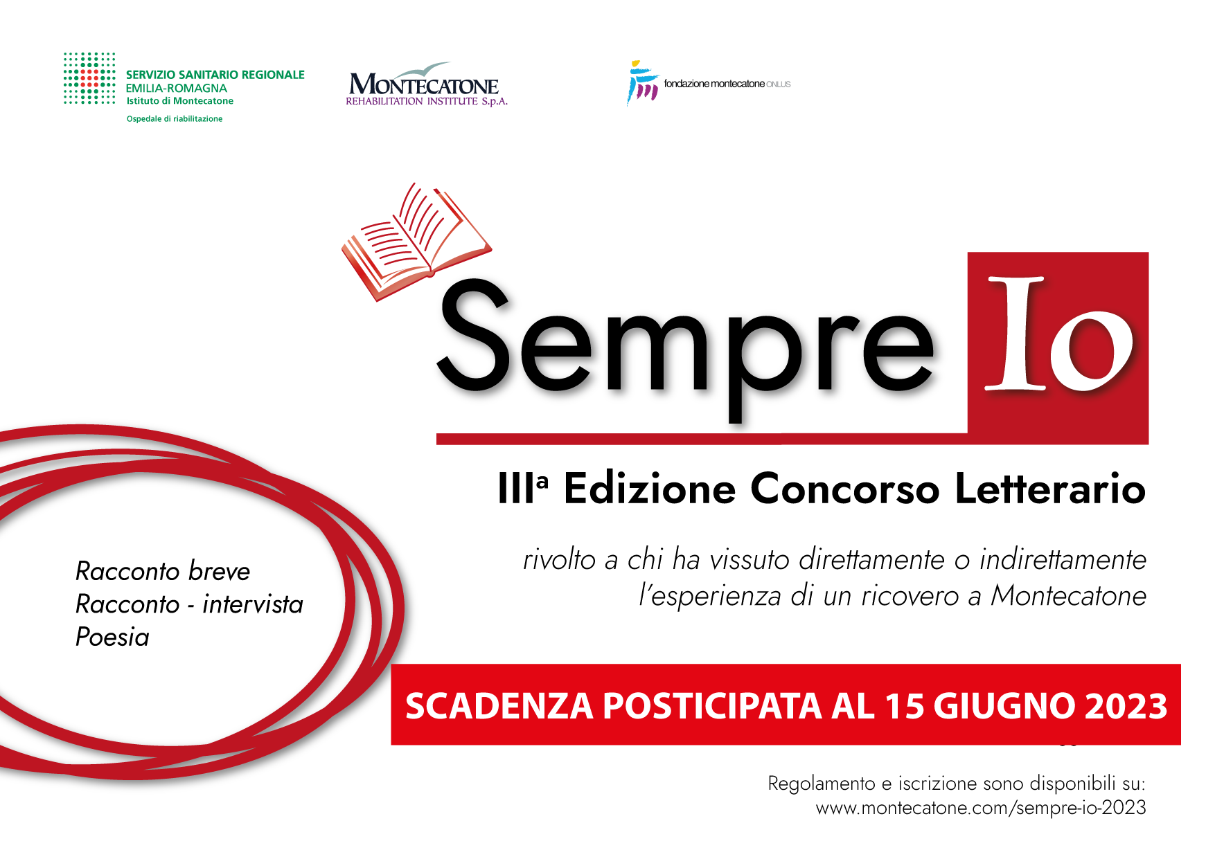 Dopo il successo delle edizioni passate, l’Istituto di Montecatone e la Fondazione Montecatone Onlus promuovono la terza edizione del concorso letterario SEMPRE IO 2023, iniziativa rivolta a chi ha vissuto direttamente o indirettamente l’esperienza di un ricovero in Istituto.
